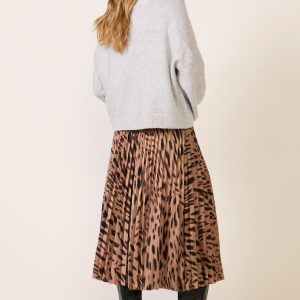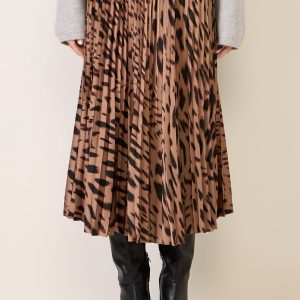 Gorgeous pleats and a chic leopard print define this stylish satin midi skirt by Sanctuary, featuring an A-line silhouette with a comfortable elastic waistband.