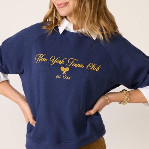 Topped with a New York Tennis Club graphic, this sporty-chic sweatshirt by Sunny Somewhere is crafted in comfortable tri-blend fabric and features a relaxed crewneck silhouette, banded hem, and raglan sleeves.
