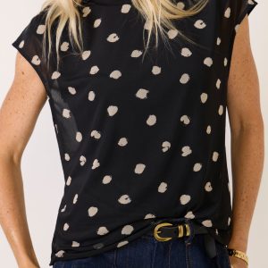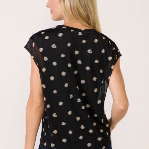 Crafted in a gorgeous printed mesh fabric, this elevated tee by EVEREVE features a crew neckline, cap sleeves, and a lined silhouette.