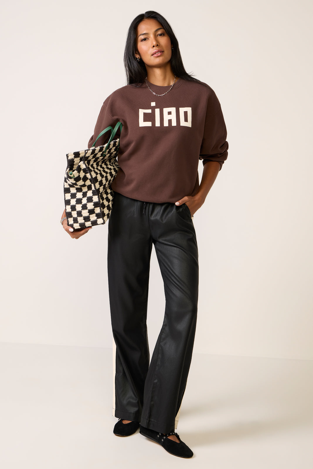 The ultimate comfy-chic staple, this crewneck sweatshirt by Clare V. is crafted in a soft fleece fabric and features an oversized silhouette with “Ciao” block lettering across the front.