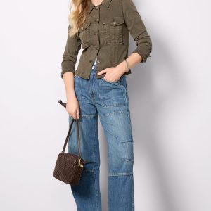 Crafted in soft stretch twill fabric, the Pacey Jacket by Paige is the perfect transitional layer, featuring a front button closure, flap pockets, and gently puffed shoulders with epaulet details.