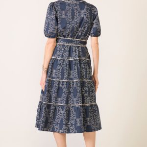 Refresh your summer-to-fall dress collection with the Paxton midi dress by Hutch. Finished in printed poplin fabric with stitching details, this tiered dress features an adjustable tie belt, side pockets, and short puff sleeves.