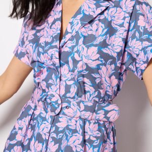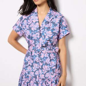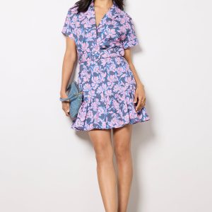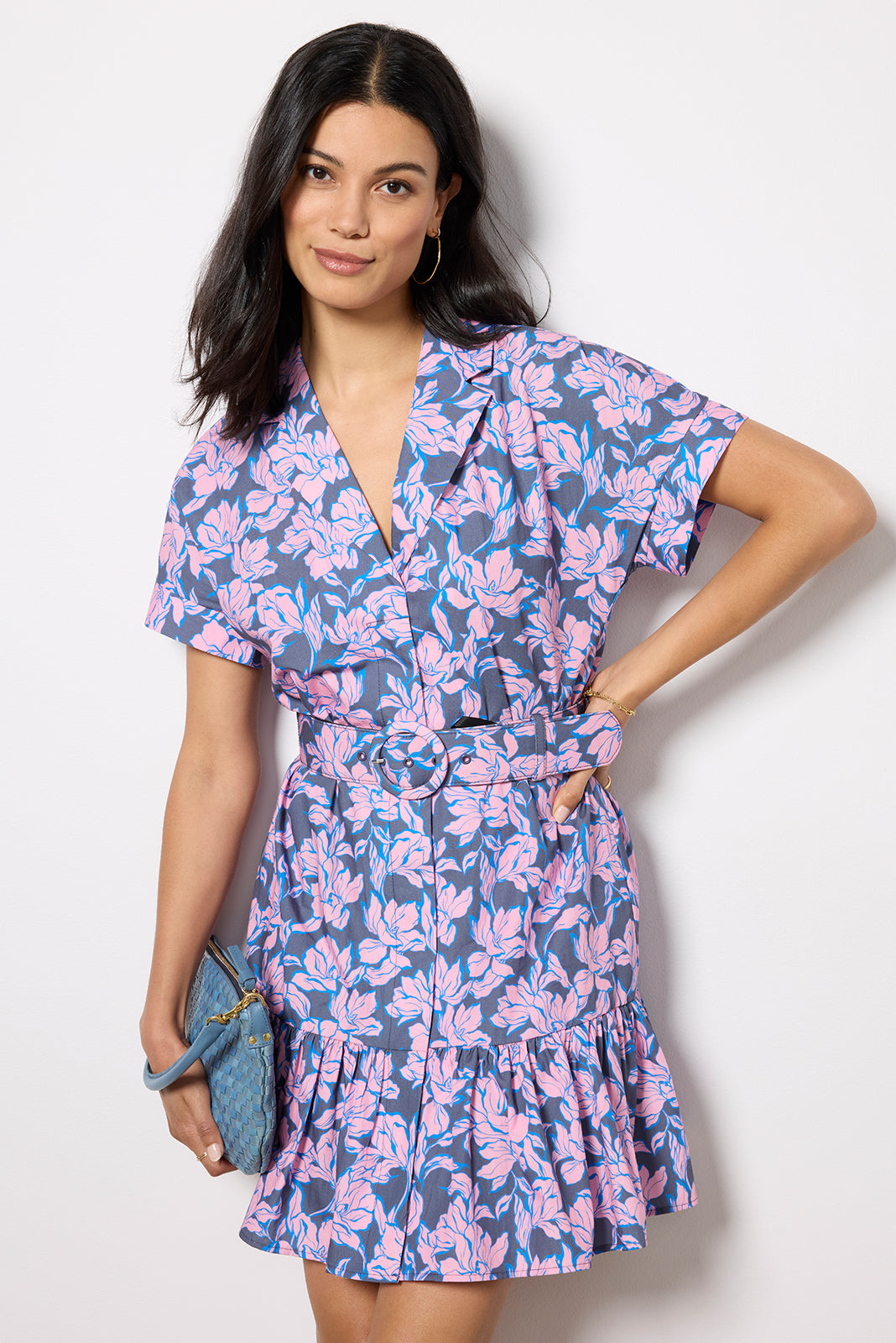 Elevate your warm-weather wardrobe with this fun floral mini dress by Hutch. Crafted in cotton poplin, this short sleeve dress shirt dress features a removable belt, notched collar, and flowy tiered hem.