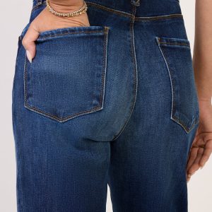 Finished with braided belt loops, the Petite Ana Bootcut Jean by KUT From The Kloth features a gently flared leg, high-rise fit, and full-length 30 1/2″ inseam. They’re perfect for day-to-night wear thanks to the versatile dark blue wash and soft stretch denim.