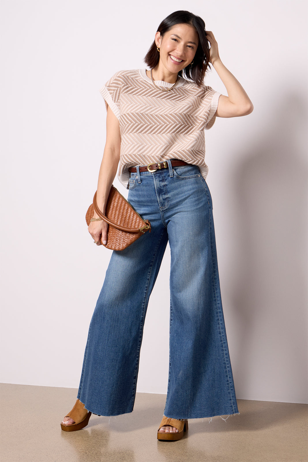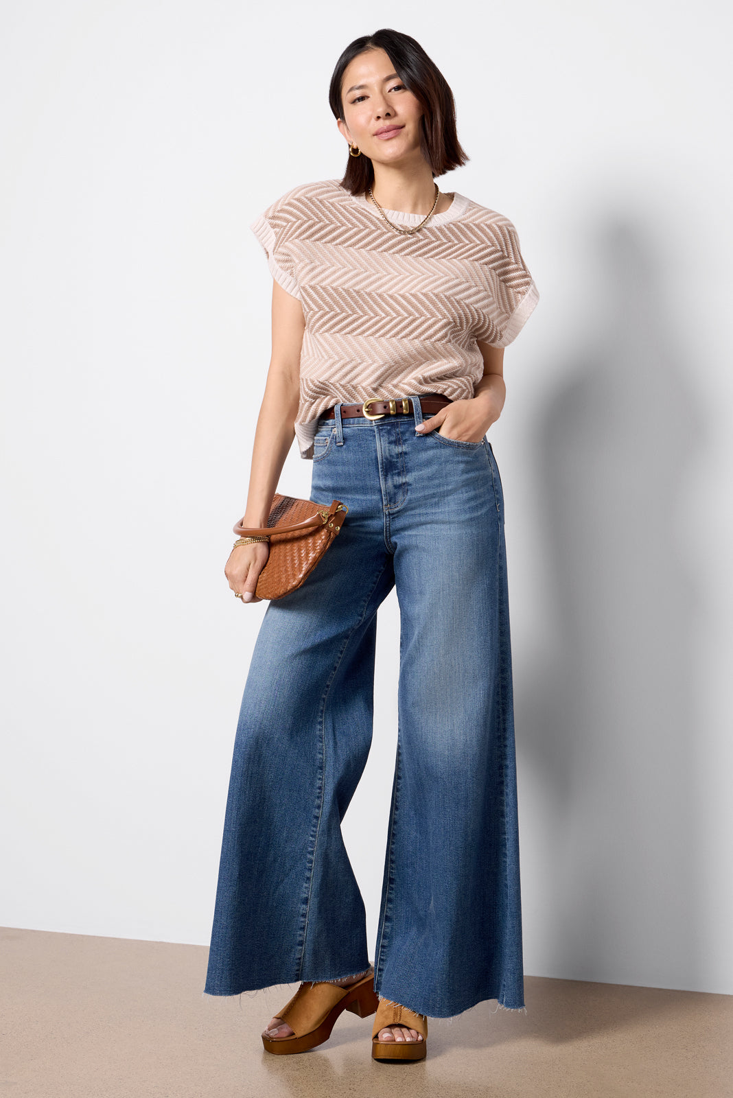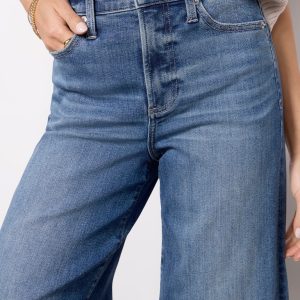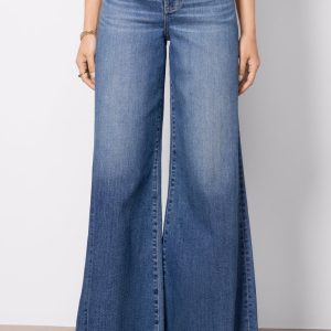 The Petite Izzy wide leg jean by Pistola will take you from day to night in style. Designed with a shorter rise and inseam for petite frames, this mid-rise jean features an exaggerated wide leg, full-length raw hems, and a faded blue wash.