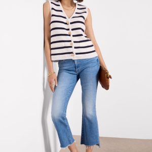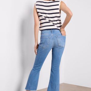 The Petite Lil Insider Crop jean by MOTHER is a petite bootcut silhouette, finished in soft stretch denim with a faded blue wash and cropped step hems.Designed to complement petite body types, these jeans feature a higher knee placement, shorter inseam, and shorter rise for a perfect, always-flattering fit.