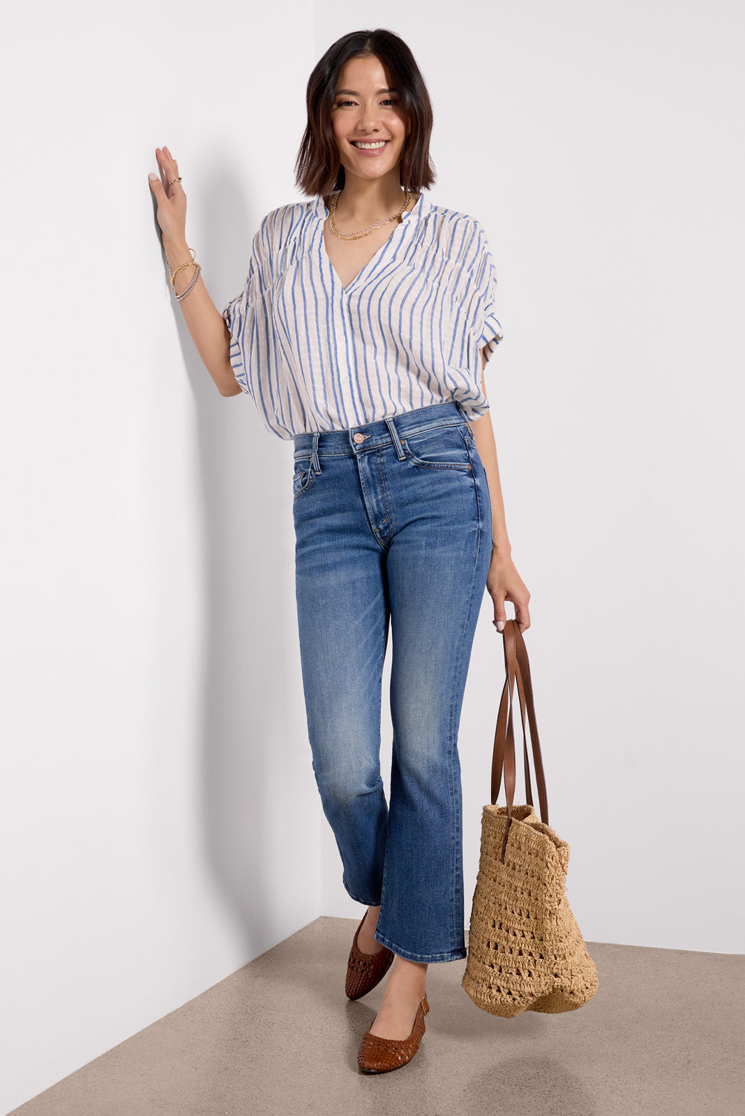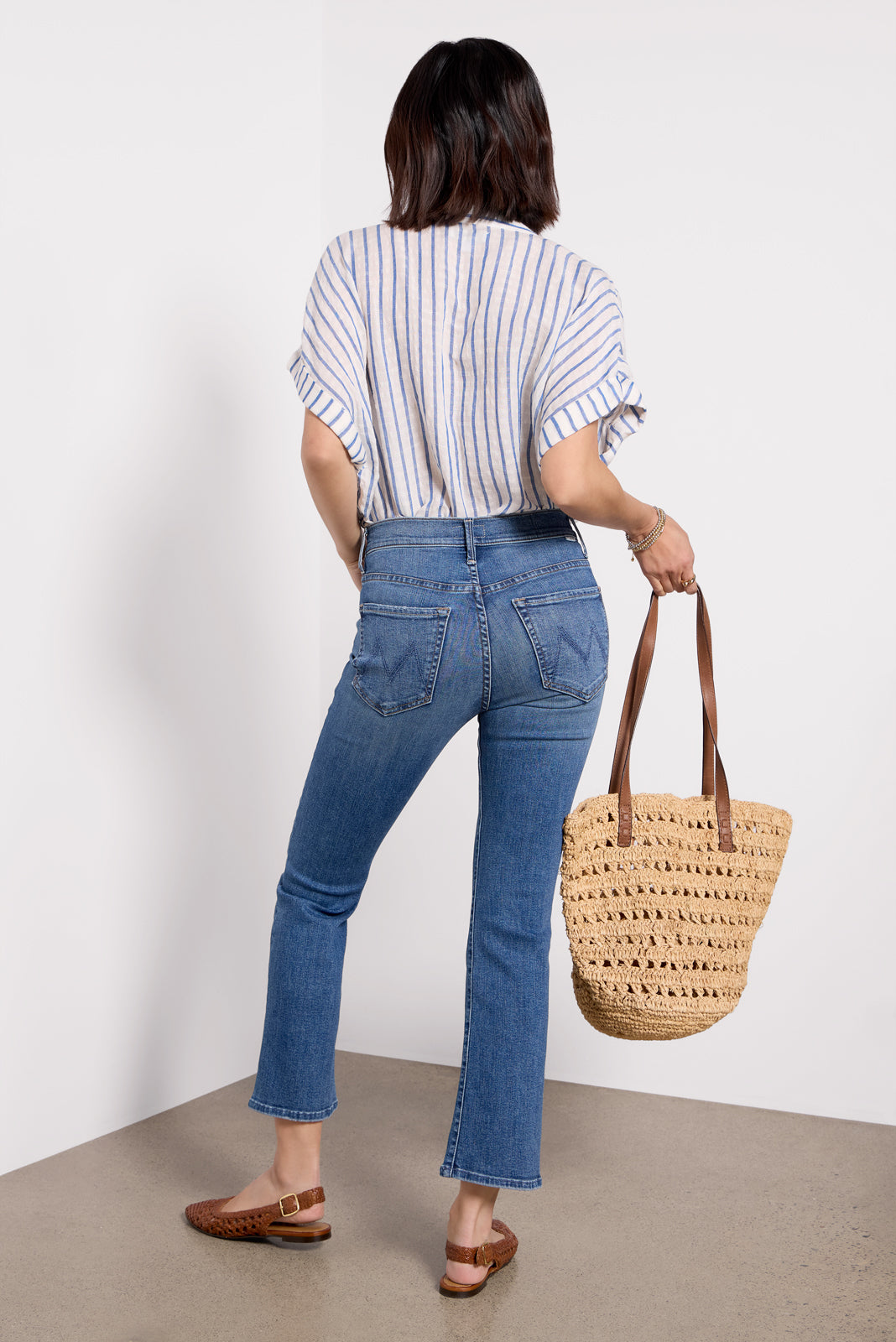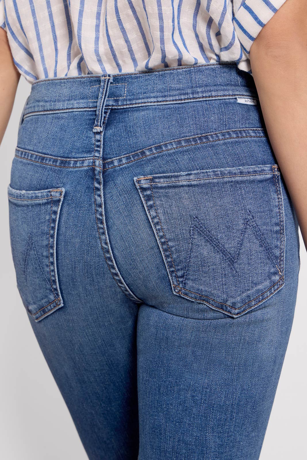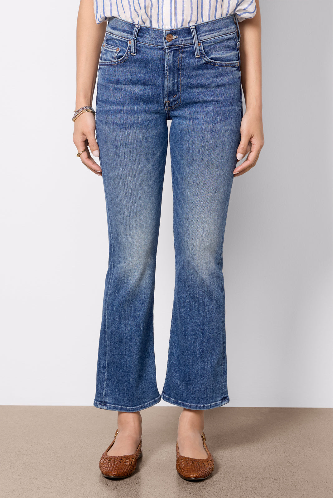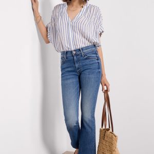 The Petite Lil Insider Flood jean by MOTHER is a petite bootcut silhouette,crafted in soft stretch denim withan ankle-length inseam, clean hems, and medium blue wash.Designed to complement petite body types, these jeans feature a higher knee placement, shorter inseam, and shorter rise for a perfect, always-flattering fit.
