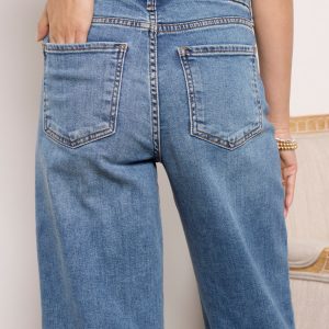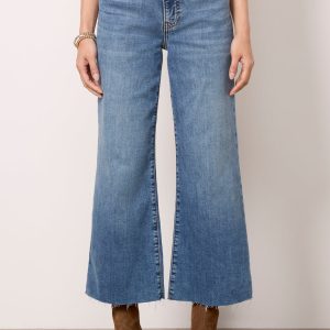 The must-have Meg jean, now in a perfect petite-friendly fit.Designed with a shorter inseam, this wide leg silhouette by Kut From The Klothfeatures a mid-blue wash, raw hems, and soft stretch denim that will move with you from day to night.