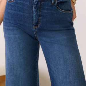 The must-have Meg jean, now in a perfect petite-friendly fit. Designed with a shorter inseam, this petite wide leg jean by KUT From The Kloth features a dark blue wash,clean hems, and soft stretch denim that will move with you from day to night.