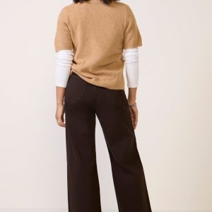 Finished in a rich brown wash with a shorter inseam and rise for petite frames, the Petite Penny wide leg jean by Pistola features a high-rise fit, raw hems, and soft stretch denim fabric.