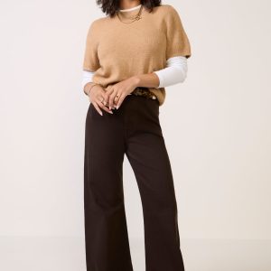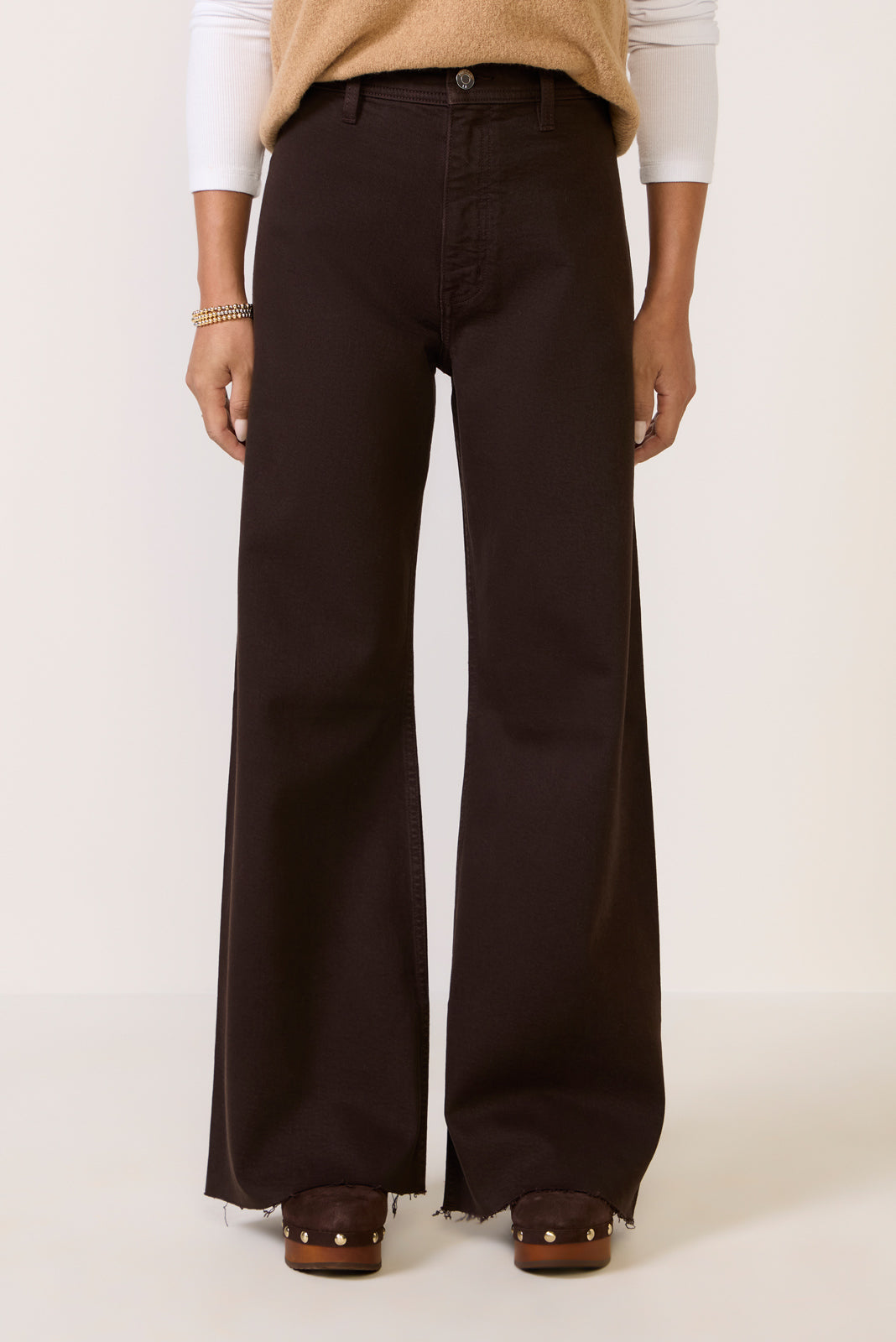 Finished in a rich brown wash with a shorter inseam and rise for petite frames, the Petite Penny wide leg jean by Pistola features a high-rise fit, raw hems, and soft stretch denim fabric.