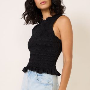 Update your night out top with the Phoebe Tank by Pistola, featuring a crew neckline,all-over smocking for a textured and supportive fit, and a ruffled hem.