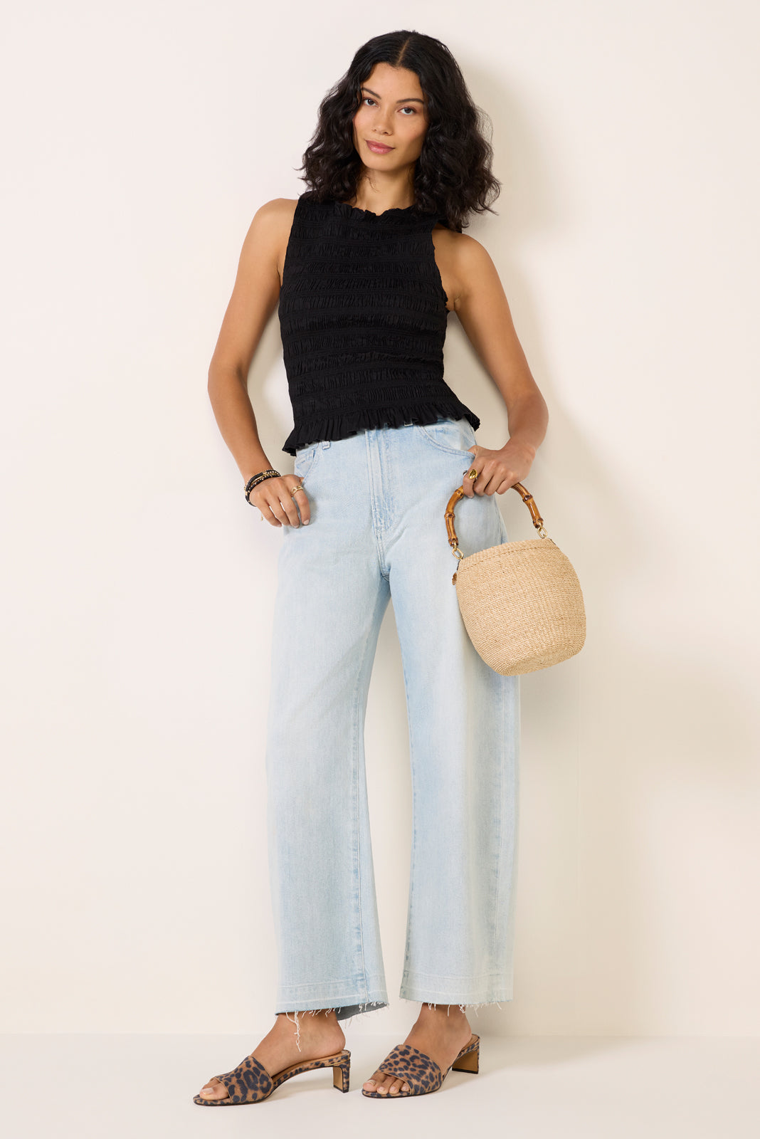 Update your night out top with the Phoebe Tank by Pistola, featuring a crew neckline,all-over smocking for a textured and supportive fit, and a ruffled hem.