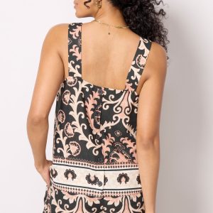 Back button details add a delicate touch to this printed tank by Sanctuary, featuring a square neckline, sleeveless silhouette, and a flowy fit.