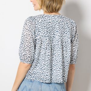 Flowy, feminine, and perfect for your spring rotation. Crafted in organic cotton, thisprintedtop by Emerson Fry features elbow-length puff sleeves and a v-neckline with double ties.