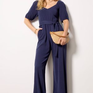 Solve your weekend uniform with the easy one-and-done Puff Sleeve Jumpsuit from Cloth& Stone, featuring a v-neckline, short sleeves with an elastic cuff, and a flattering tie belt.