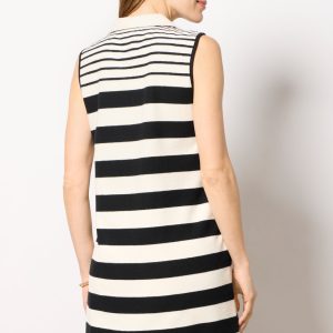Perfect for your summer rotation, this striped mini dress by EVEREVE is crafted in soft, textured knit fabric and features a sleeveless shift silhouette and a collared snap-front neckline.