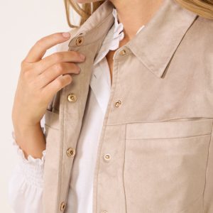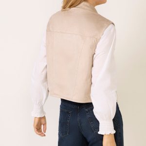 The Reagan Faux Suede Vest by EVEREVE is the perfect finishing touch to all your fall looks, featuring a classic collar, snap button closures, two chest pockets, and a cropped silhouette.