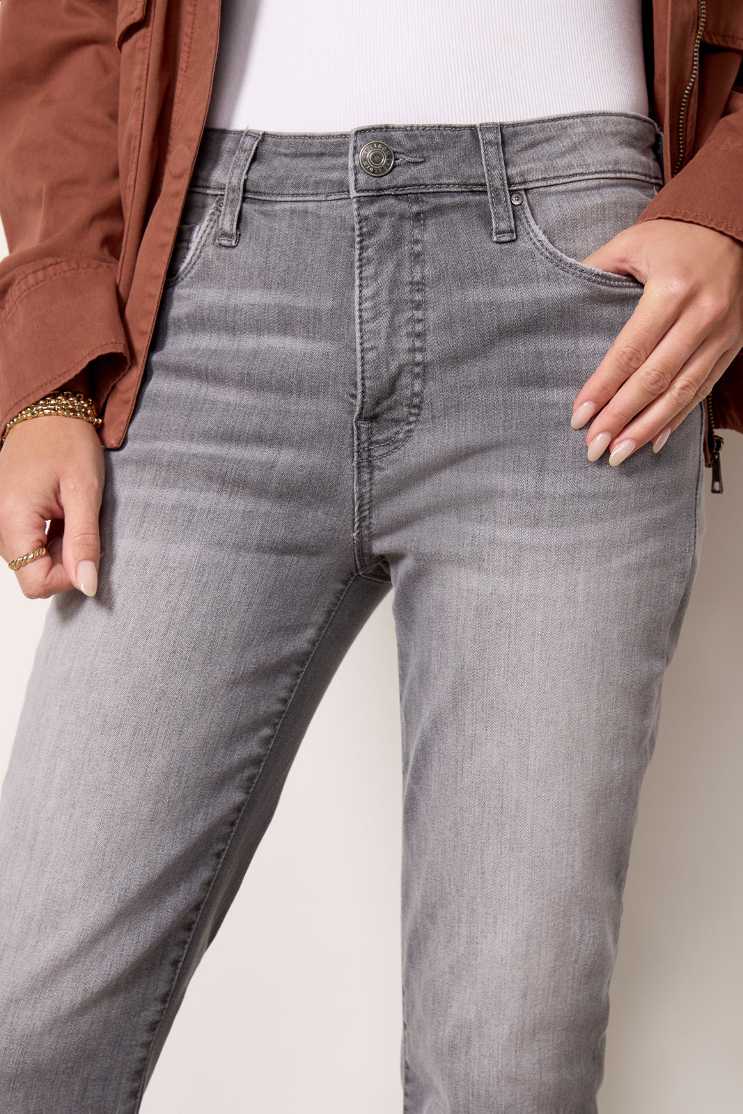 A versatile wardrobe staple, the Reese jeans by Kut From The Kloth feature a flattering straight leg silhouette, faded grey wash, and ankle-length hems. You’ll be wearing them day to night thanks to the soft stretch denim fabric.