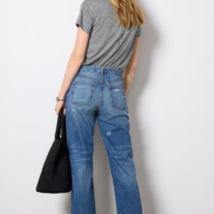 Update your day-to-night denim collection with the Rosebowl straight leg jean by ASKK NY. Finished with fading anddistressed details, these high-rise jeans feature a full-length leg, relaxed fit, and soft, rigid cotton denim.