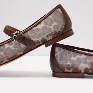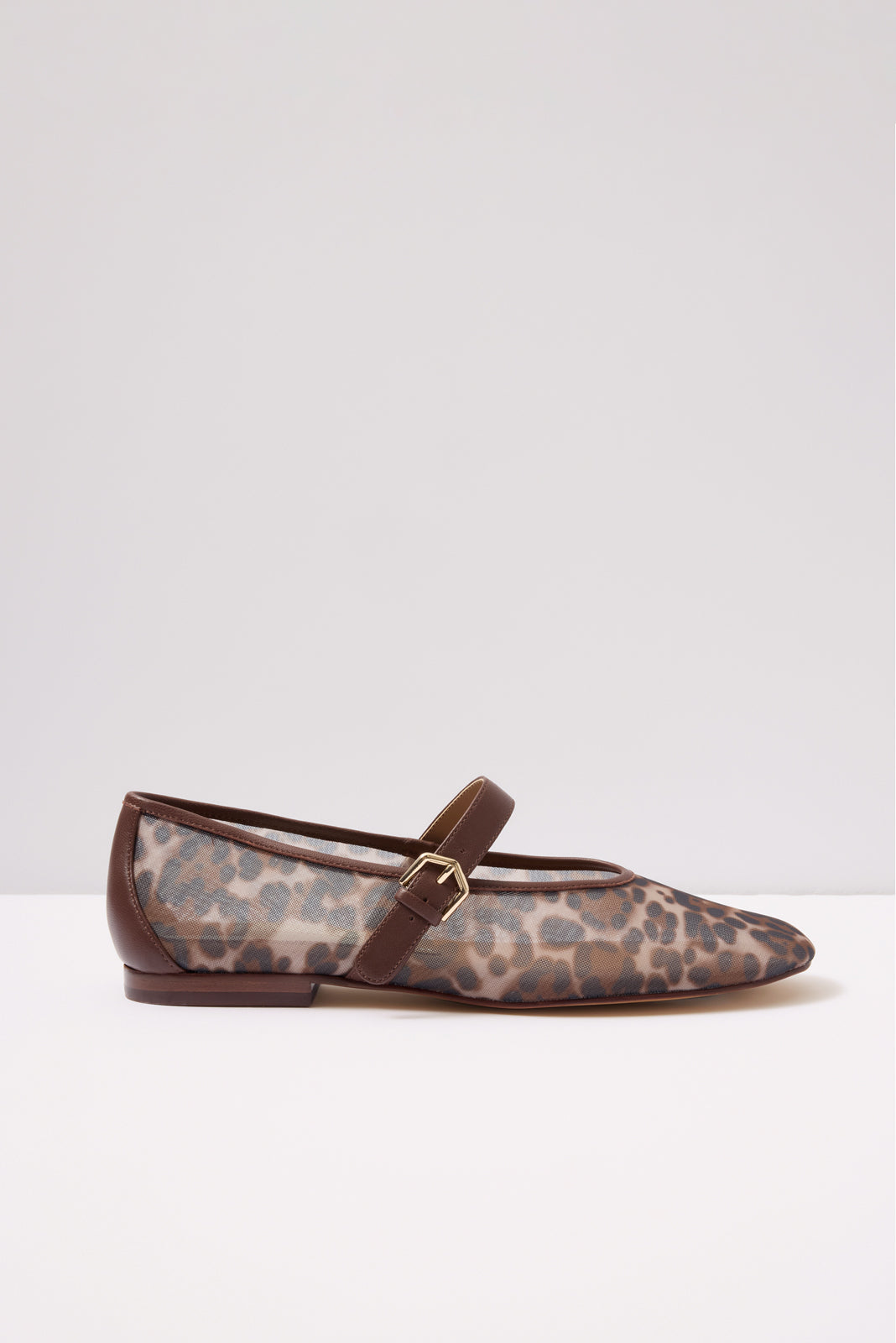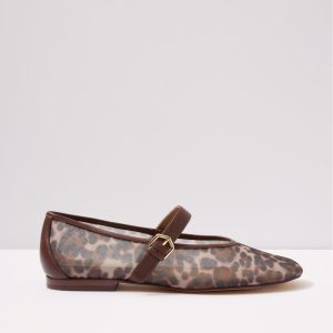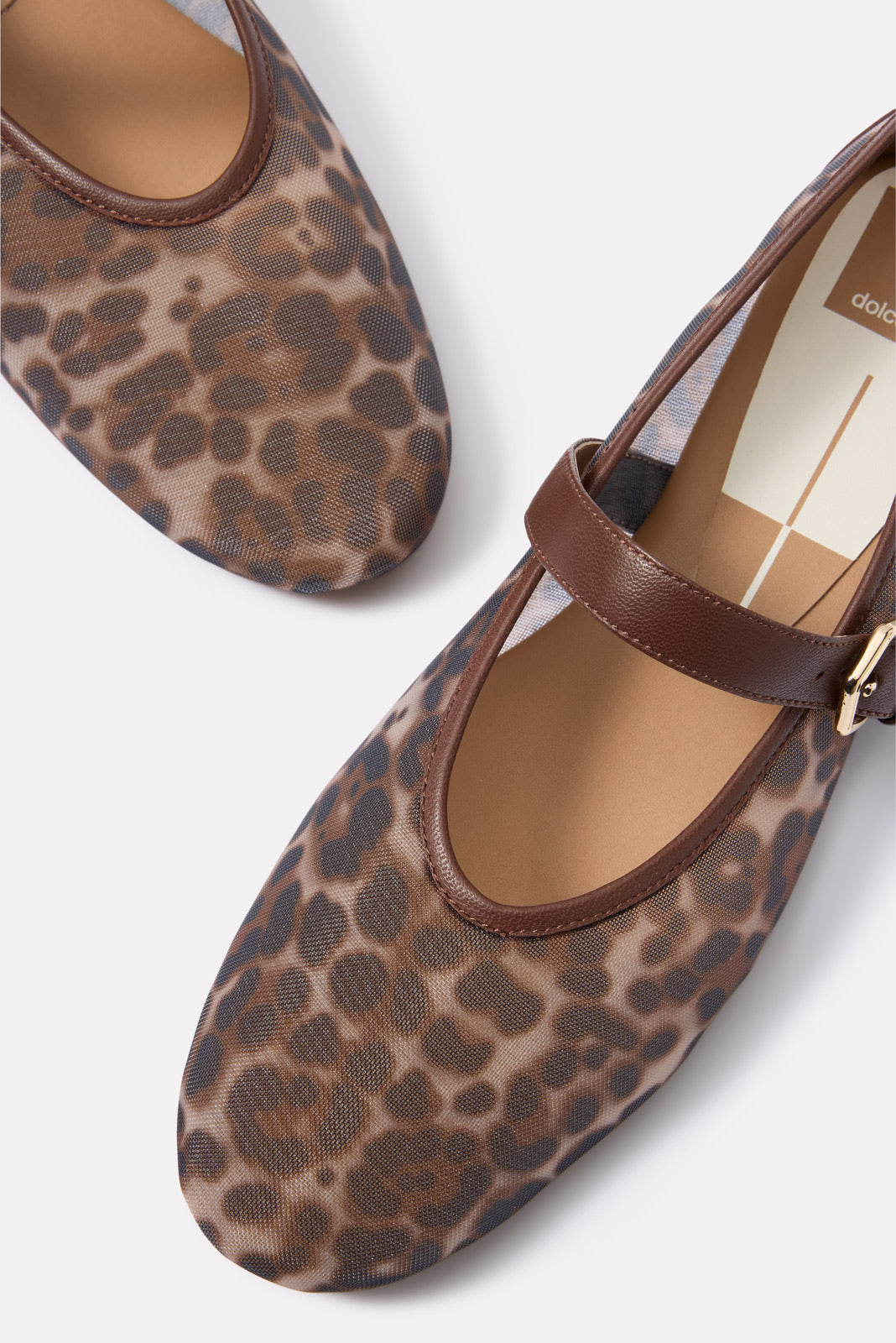 These oh-so-chicMary Jane flats from Dolce Vita feature a leopard print mesh upper with leather details and a gold-tone buckle.