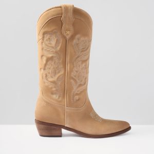 Lean into Western style with the Ruesuede cowboyboot by Sam Edelman, finished with a pointed toe, stacked heel, and stitched detailing.