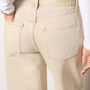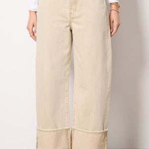 Perfect for day-to-night wear, thesecuffed wide leg jeans by Pistola are crafted in rigid cotton denim and feature a high-rise waist,rolled hems, and aneutral beige wash.