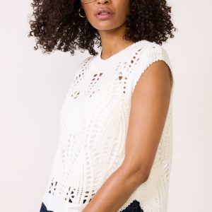 Open knit details define this easy sweater tank by EVEREVE, featuring a crew neckline, a slightly cropped silhouette, and a keyhole back button closure.