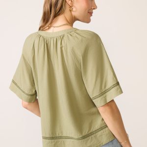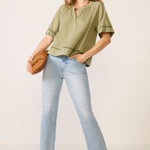 Designed with effortless style, the Sadie cotton top by Xirena features a relaxed, slightly cropped fit,split neckline with a single button closure, and embroidered detailing at the sleeves and hem.