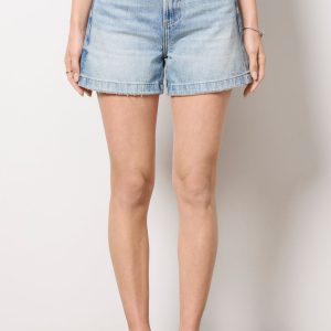 Top off your summer wardrobe with the Saige jean shorts by Pistola, featuring a high-rise silhouette, clean hems, and rigid non-stretch cotton denim in alight blue wash.