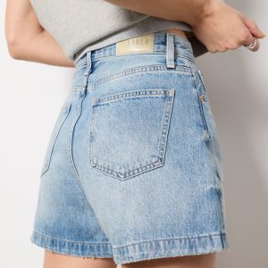 Top off your summer wardrobe with the Saige jean shorts by Pistola, featuring a high-rise silhouette, clean hems, and rigid non-stretch cotton denim in alight blue wash.