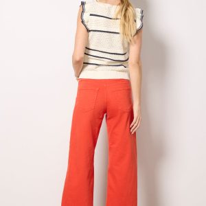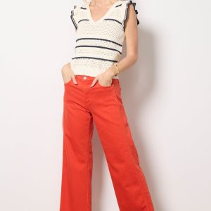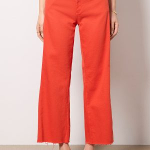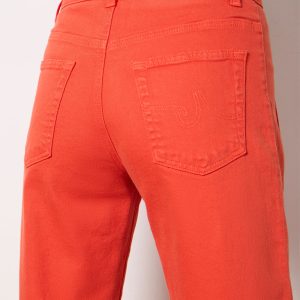 Add a pop of color to your denim collection with the Saige Wide Leg Crop by AG, featuringmid-rise fit and raw ankle-length hems.