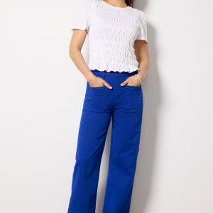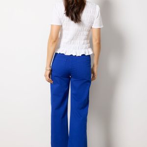 Finished in soft stretch twill fabric, this modern sailor pant by ASKK NY features a high-rise silhouette with a relaxed leg, full-length inseam, and patch pockets at the front and back.