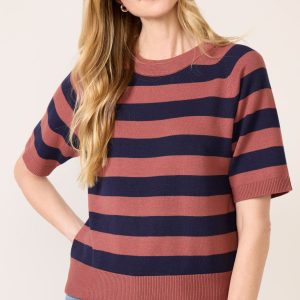 A chic wardrobe essential, the Sami striped sweater by EVEREVE features a classic crewneck silhouette with short raglan sleeves and ribbed trim—perfect for wearing from workweek to weekend plans.
