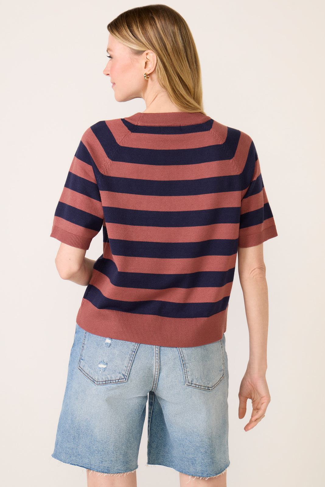 A chic wardrobe essential, the Sami striped sweater by EVEREVE features a classic crewneck silhouette with short raglan sleeves and ribbed trim—perfect for wearing from workweek to weekend plans.