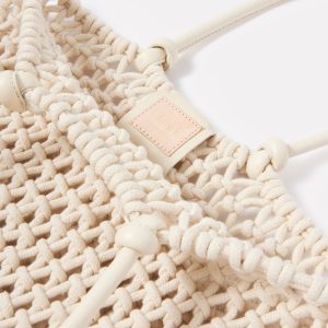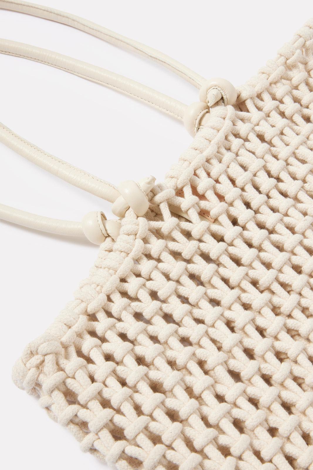 Carry your warm-weather necessities in this crochet tote by Clare V., featuring woven cotton rope and leather handles—perfect for days at the beach, farmers market, and more.
