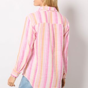 Chic and weekend-ready, this striped button-down shirt by Z Supply is crafted in breezy cotton fabric with a relaxed fit, curved hem, and left chest pocket—perfect for elevating any warm-weather look.