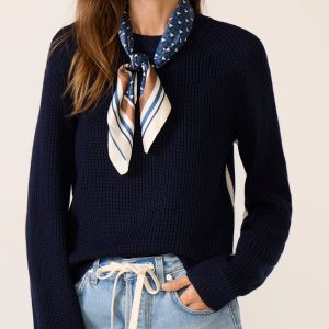 A colorblocked stripe details this stylish pullover sweater by Velvet,finished in a textured wool-blend knit with raglan sleeves and a cropped length.