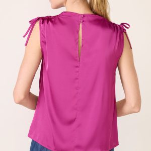 Chic and elegant, the Saylor top by EVEREVE will elevate any look, crafted in gorgeous satin fabric with a cowl neckline, tie shoulder detail, and back keyhole button closure.