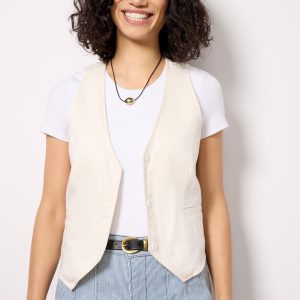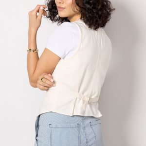 Layered or alone, this Cloth & Stone vest will add instant polish to any spring look. Finished in a soft Tencel blend, this chic vest features a fitted, cropped silhouette with seamed detailing, front button closures, and an adjustable strap at back.
