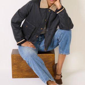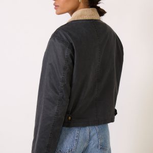 Finished with a contrasting corduroy collar, this BlankNYC barn jacket will be your go-to fall layer. The Shifting Gears jacket is crafted from waxed cotton-blend fabric and features a cropped silhouette, snap pockets, and zipper and snap-front closures.