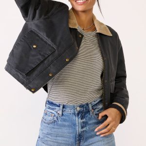 Finished with a contrasting corduroy collar, this BlankNYC barn jacket will be your go-to fall layer. The Shifting Gears jacket is crafted from waxed cotton-blend fabric and features a cropped silhouette, snap pockets, and zipper and snap-front closures.