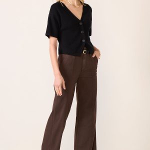 Chic and versatile, this v-neck cardigan sweater by EVEREVE features a cropped silhouette with short sleeves and front button closures.
