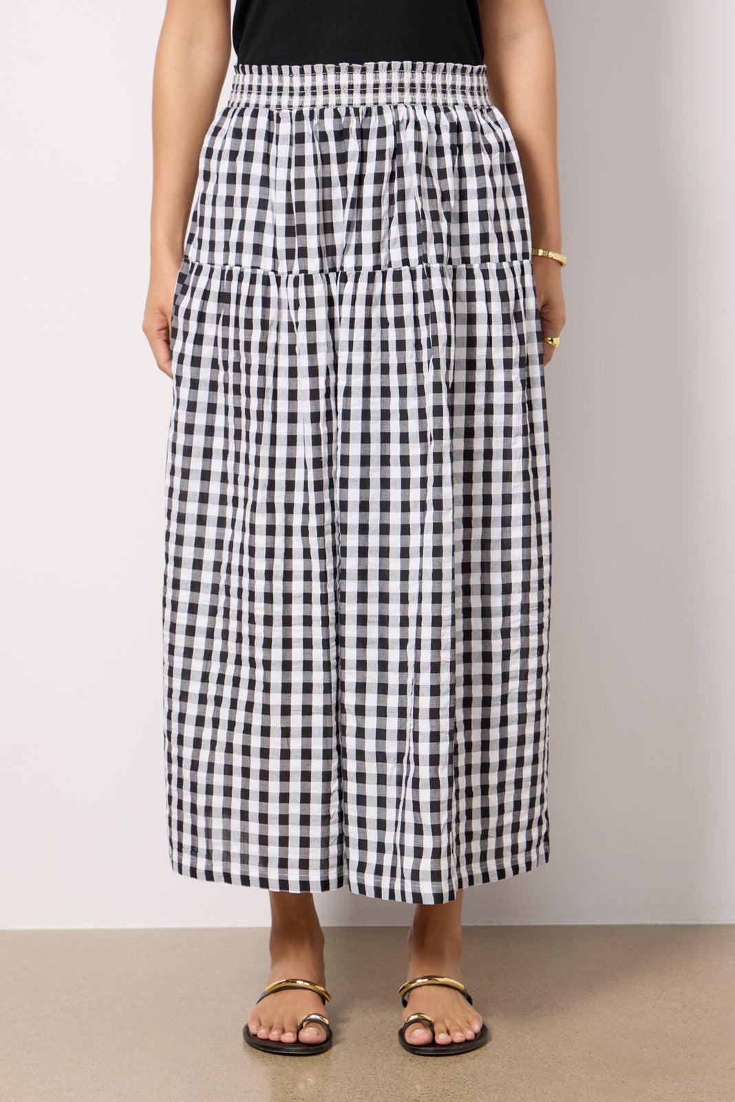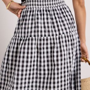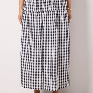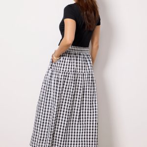 Chic and spring-ready, this gingham maxi skirt by Emerson Fry is crafted in flowy cotton fabric and features a single tier silhouette, shirred elastic waistband, and side pockets. Add the matching Studio Boxy Top for a stylish two-piece set.