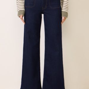 A wide leg jean that fits and flatters, the Slim Palazzo by FRAME is crafted in dark-wash denim and features a high-rise silhouette, full-length inseam, and patch pockets at the front and back.