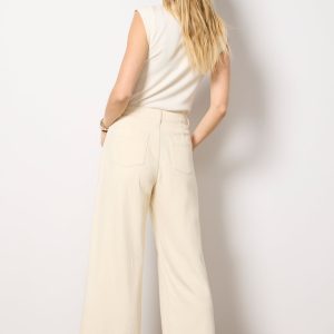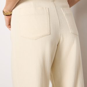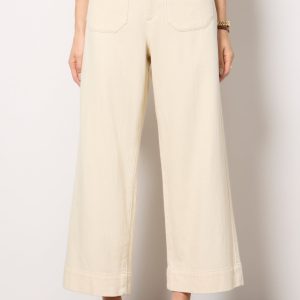 Crafted in a lightweight cotton twill fabric, the Soft Marine Wide Leg Crop features a mid-rise waist, front patch pockets, and a wide-leg silhouette.