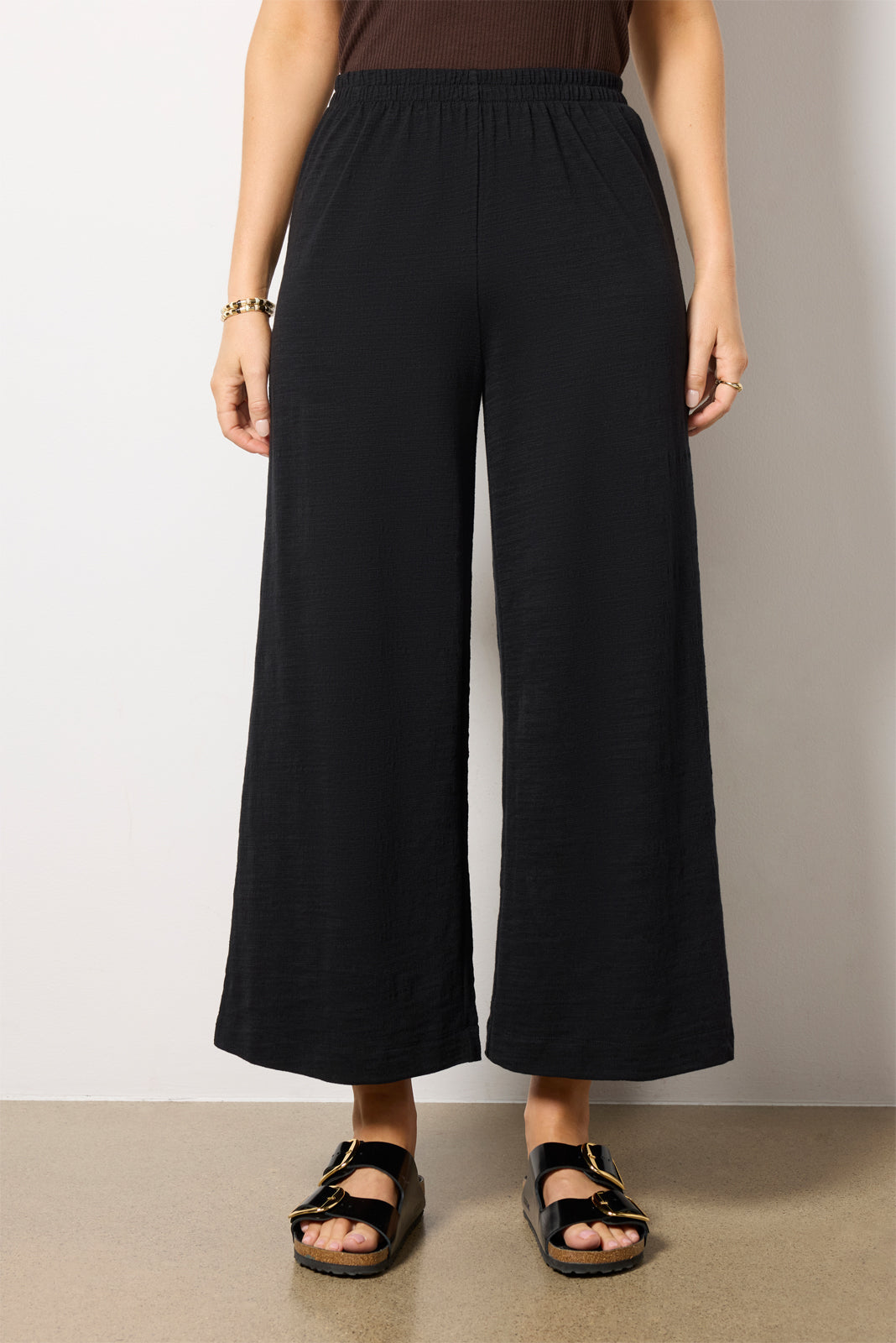 Easy to wear and easy to love, the Solace wide leg pants by Z Supply are crafted from soft, textured knit fabric and feature a pull-on silhouette with a comfortable elastic waistband and ankle-length hems. Pair with the matching Solace Textured Knit Top for the perfect summer two-piece set.