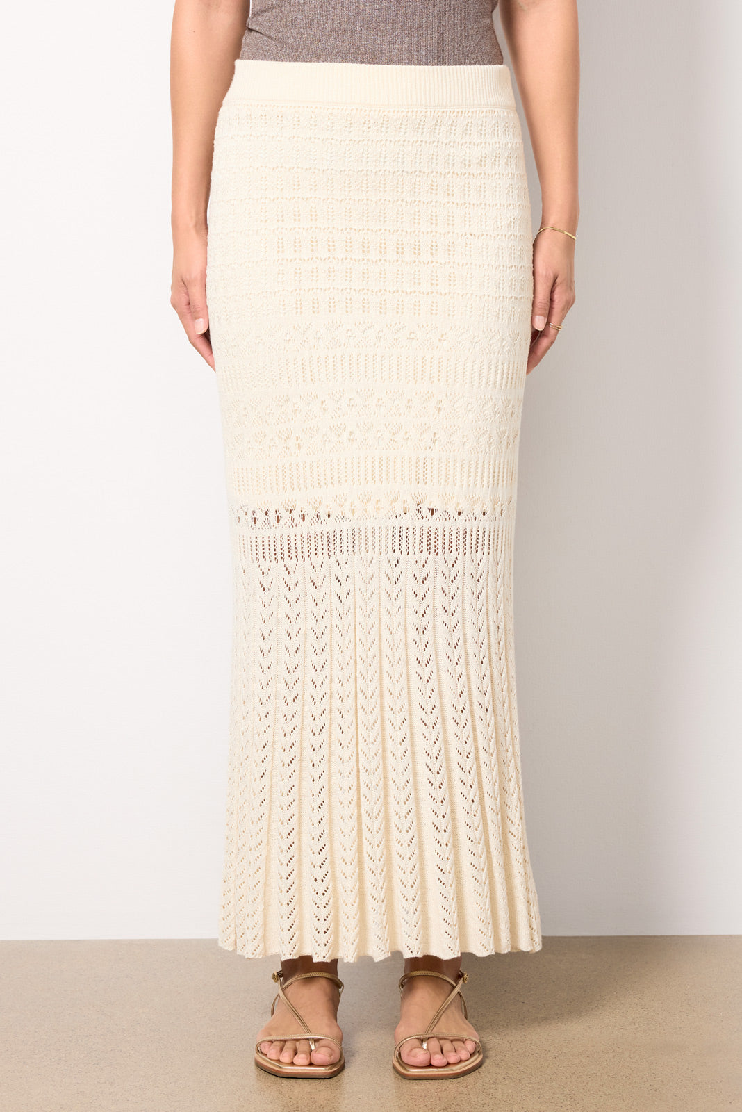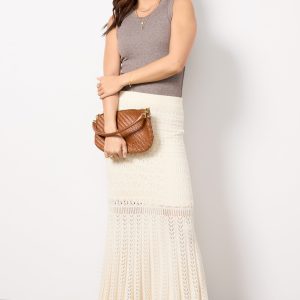 Add a touch of texture to your spring wardrobe with the Soria Crochet Skirt by Z Supply. Lined to mid-thigh, this midi skirt is crafted in a midweight cotton-blend knit with an elastic waist and flowy hem. Pair with the matching Nina Crochet Tank for a chic two-piece set.