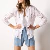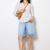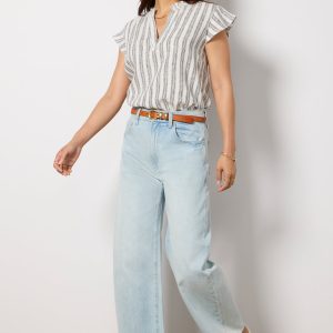 Perfect for your warm-weather wardrobe, this striped top by Sanctuary is crafted in linen-blend fabric and features a relaxed fit, flutter cap sleeves, and a smocked collar with a ruffle detail.