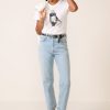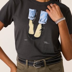 Step your t-shirt collection up a notch with the Stand By Mushie Tee by CPress Studio, featuring a crew neckline, relaxed fit, and a jeans and heels graphic on the front.